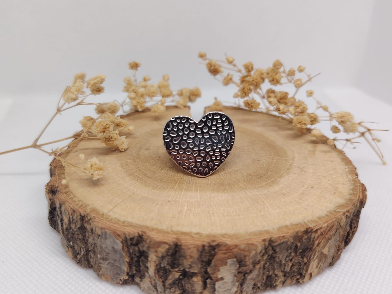Bague Cœur Martelée en Acier Inoxydable – Caractère & Élégance