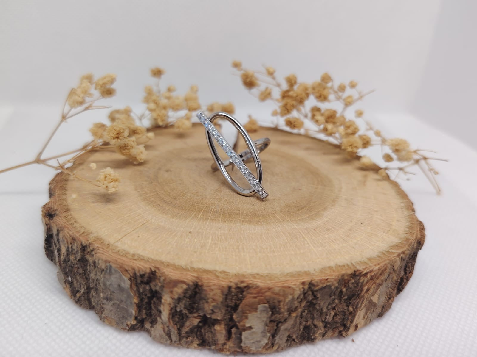 Sublimez votre style avec cette bague géométrique en acier inoxydable, au design contemporain et raffiné. Sa forme structurée, composée de lignes circulaires élégantes et d’une barre sertie de cristaux scintillants, apporte une touche de modernité et de brillance subtile à vos tenues.