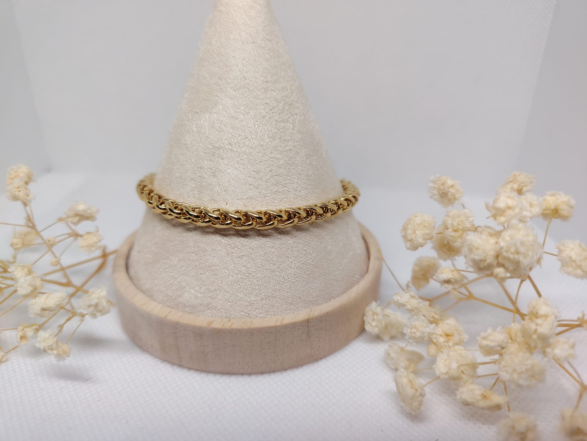 Minimaliste et intemporel, ce bracelet chaîne dorée est un indispensable de toute collection de bijoux. Son maillage élégant apporte une touche chic et moderne, parfaite pour sublimer aussi bien une tenue du quotidien qu’un look plus habillé.