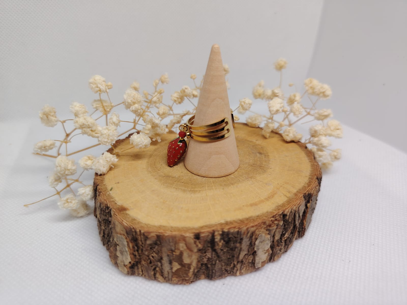 Apportez une touche de fantaisie et de fraîcheur à votre look avec cette bague en acier inoxydable doré, ornée de jolis charms délicats, dont une adorable fraise colorée. À la fois tendance et originale, elle est parfaite pour celles qui aiment les bijoux pleins de personnalité.