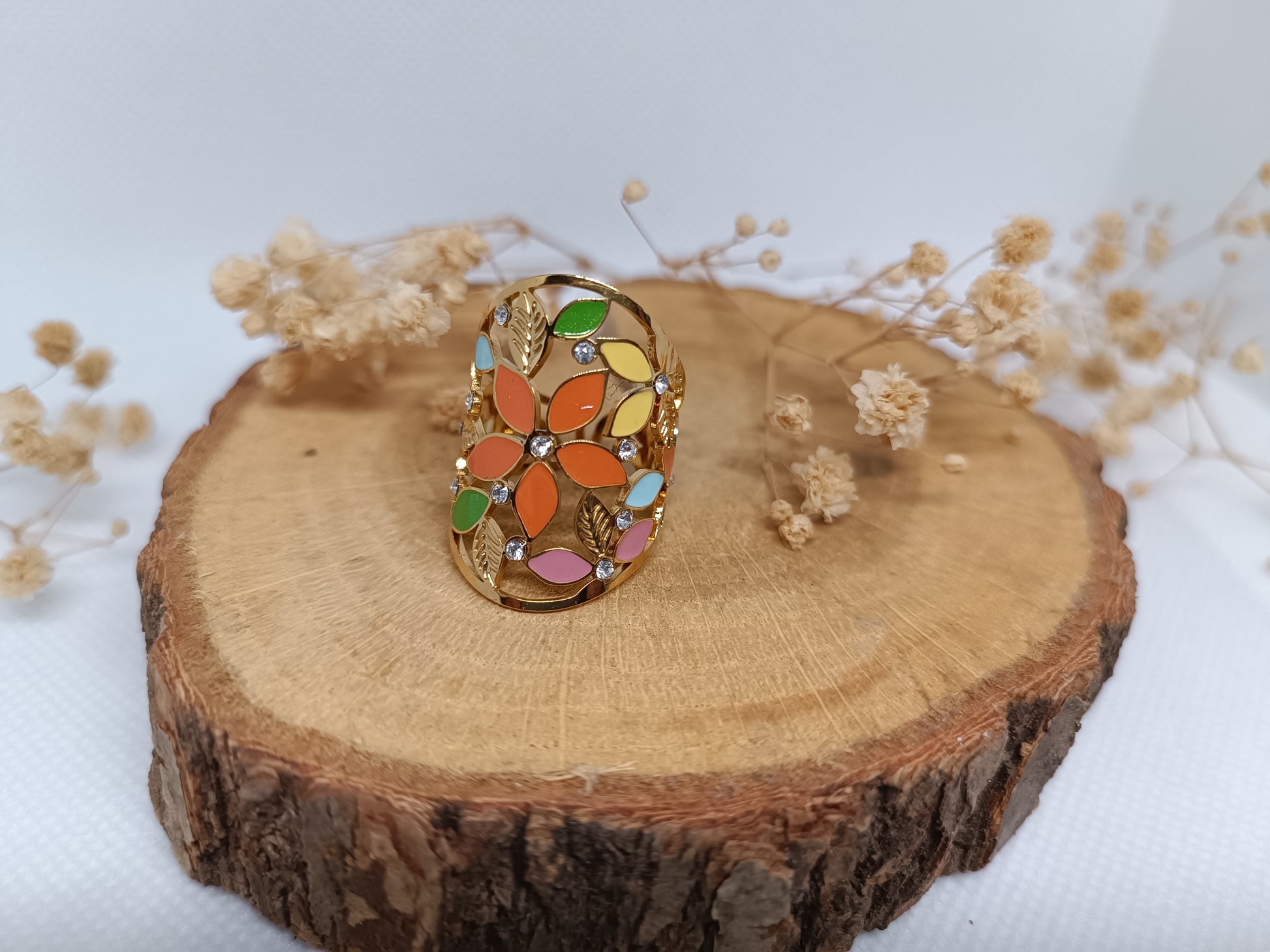 Bague en Acier Inoxydable dorée ornée de Fleurs