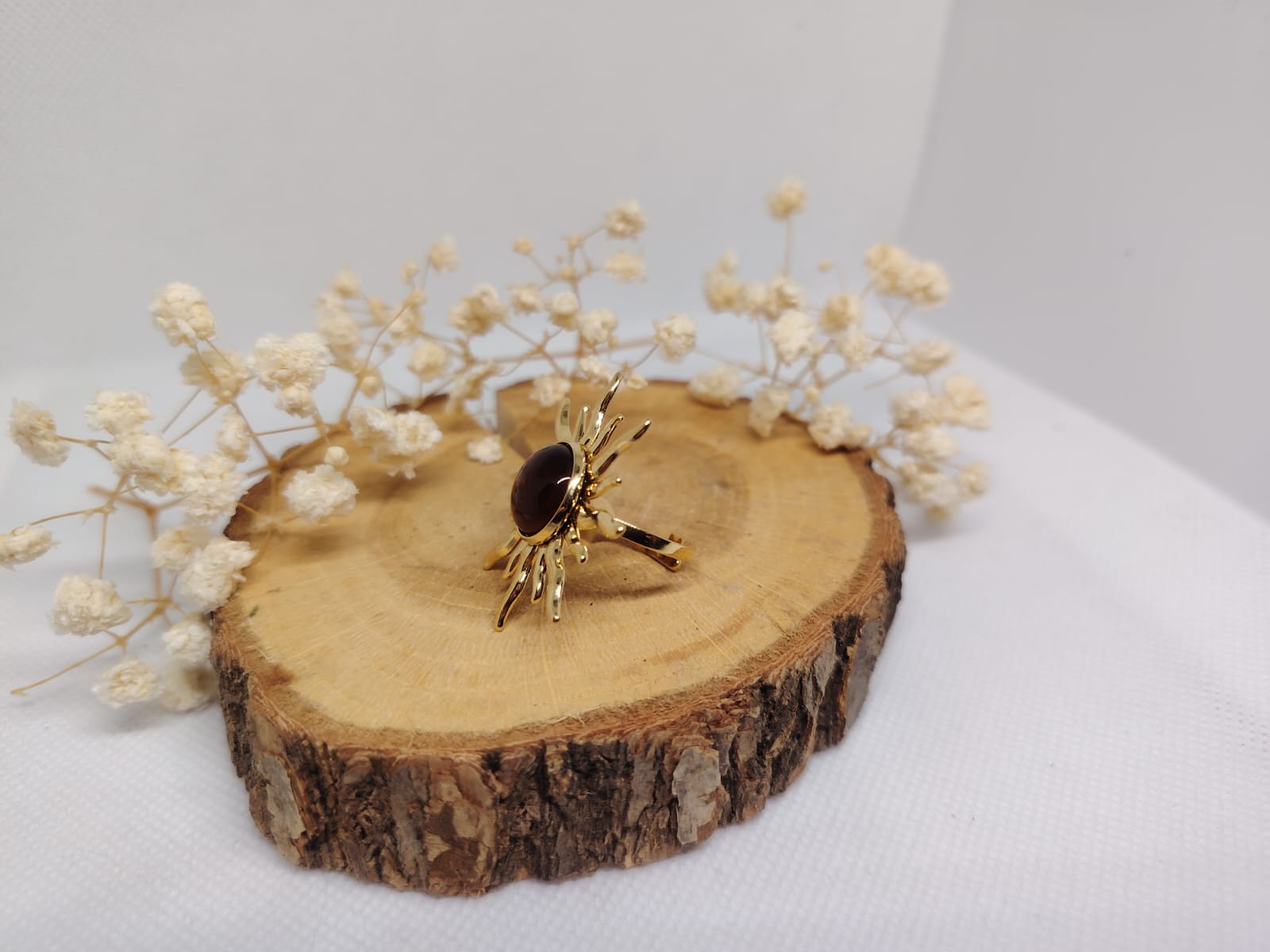 Laissez rayonner votre style avec cette bague soleil dorée en acier inoxydable, au design lumineux et audacieux. Son centre aux reflets ambrés profonds capte la lumière et attire immédiatement le regard, tandis que les rayons dorés apportent une touche solaire et symbolique à votre tenue.