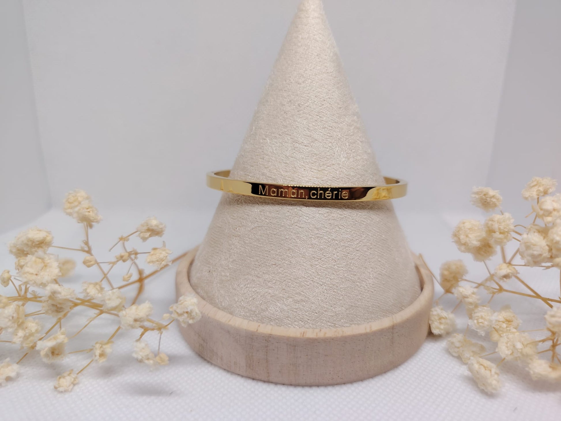 Exprimez tout votre amour avec ce bracelet jonc gravé « Maman chérie ».
