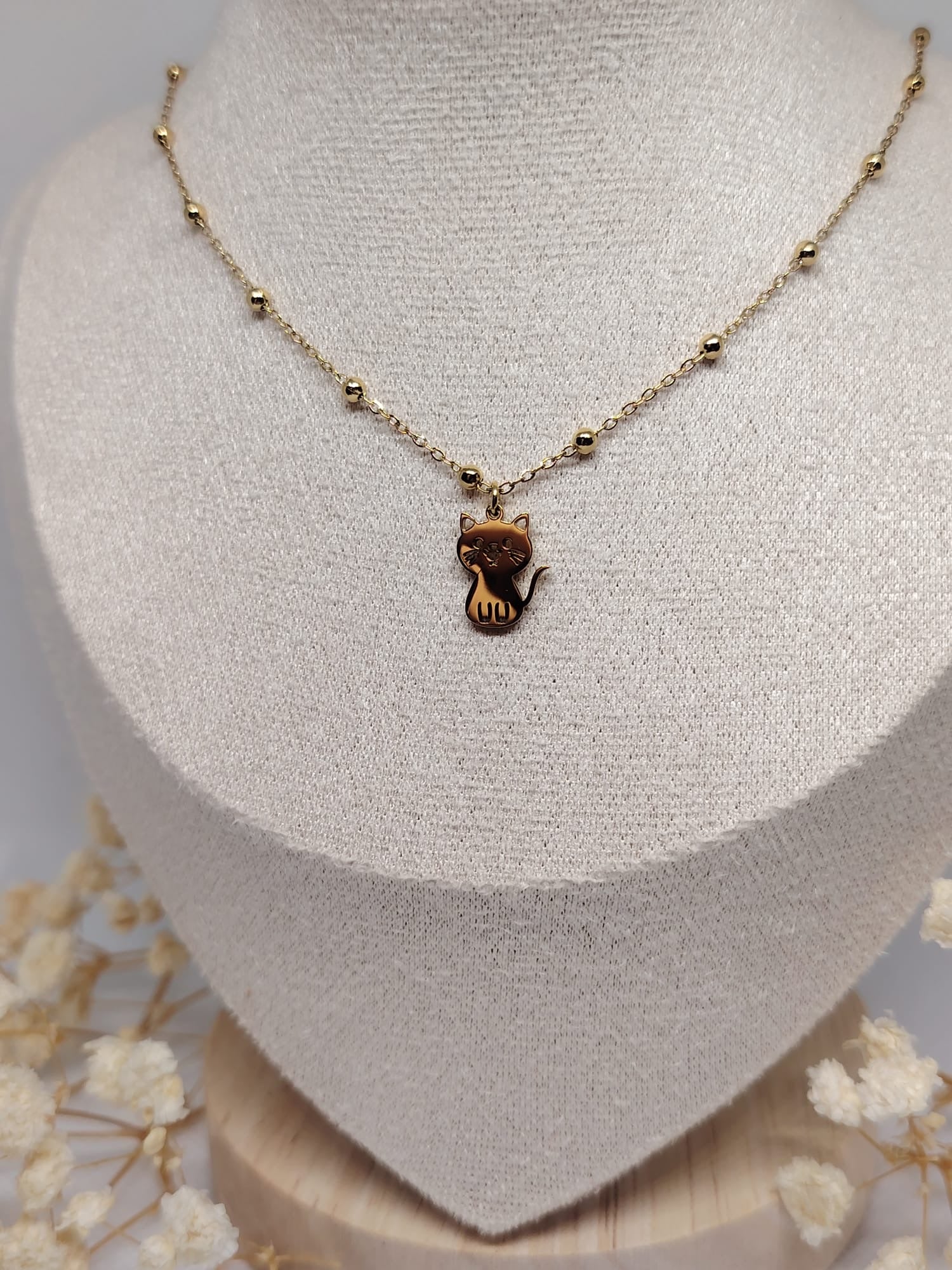 Collier Enfant Chat Doré – Acier Inoxydable